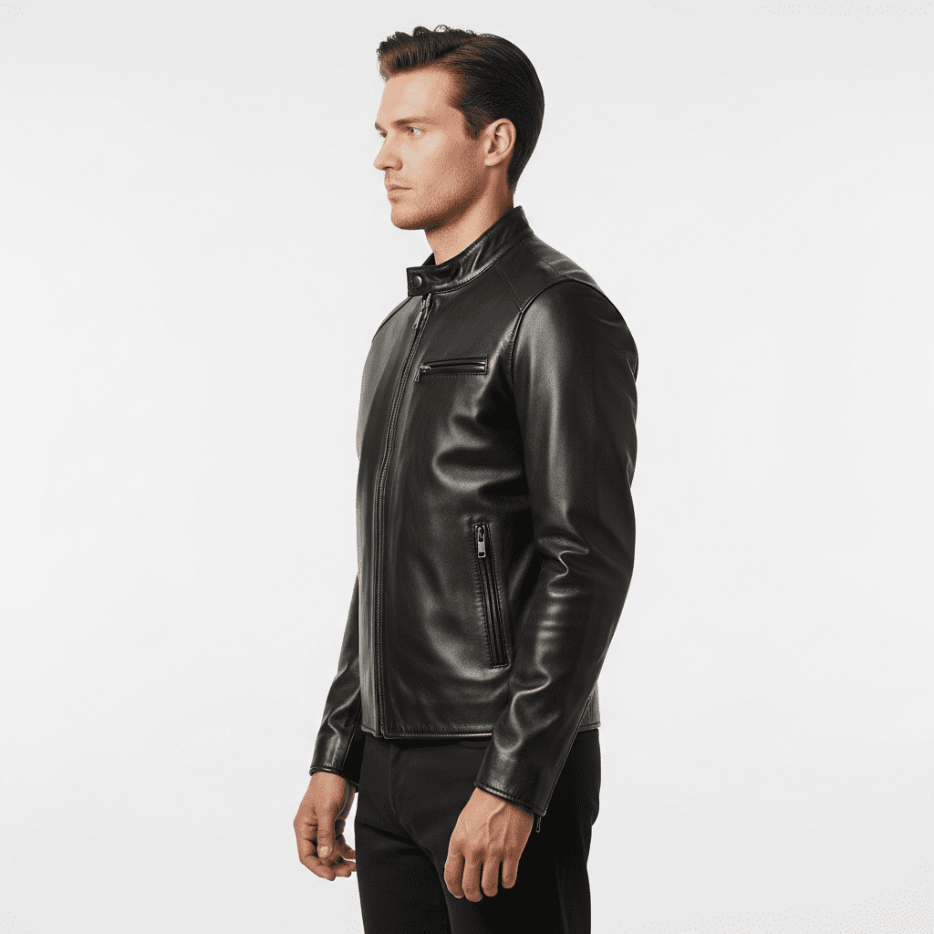 You should be able to zip the jacket up all the way without sucking in your stomach. It should feel snug—like a hug—but not restrictive. Remember, a men’s black leather jacket looks best when it is fitted. Excess fabric can ruin the sharp, confident silhouette.