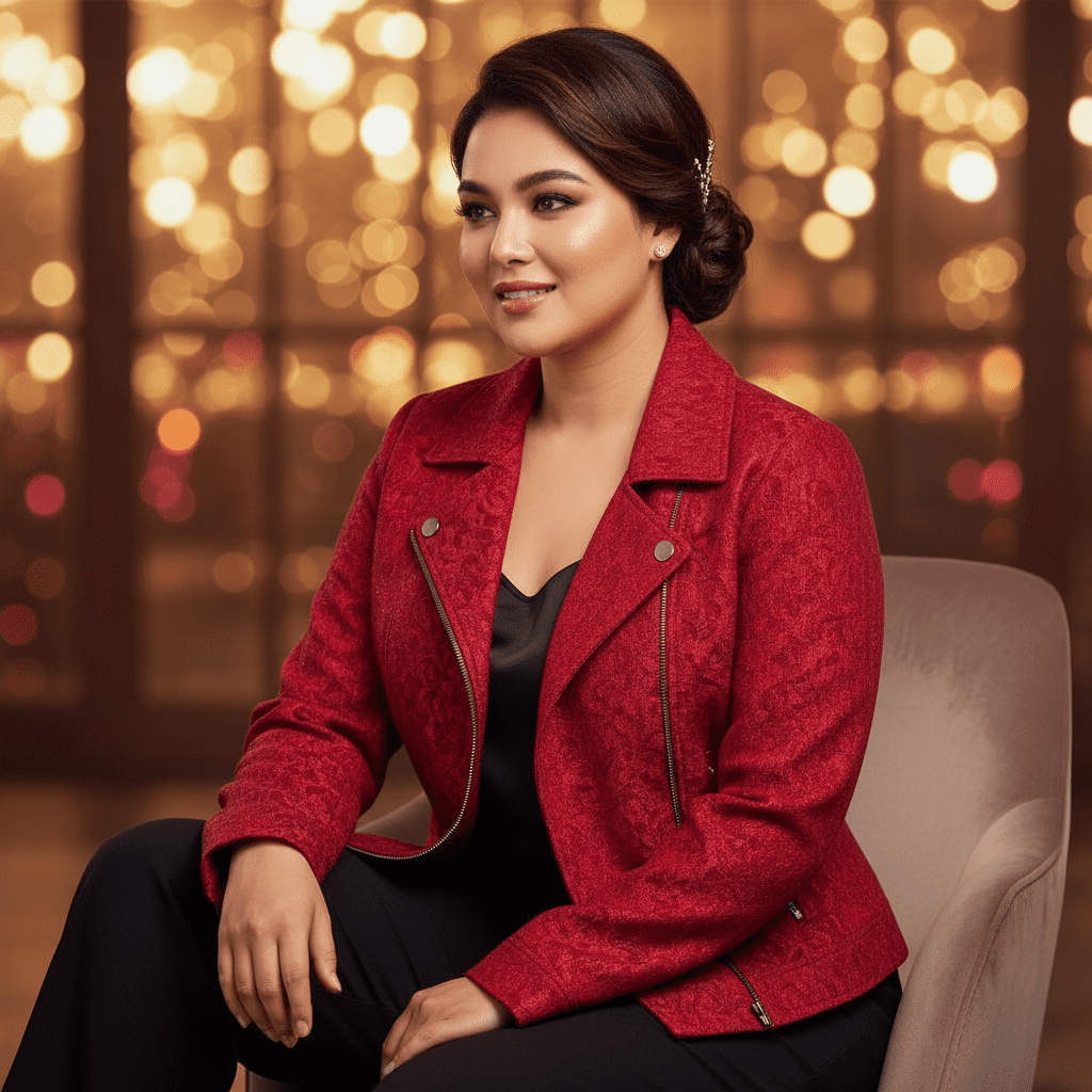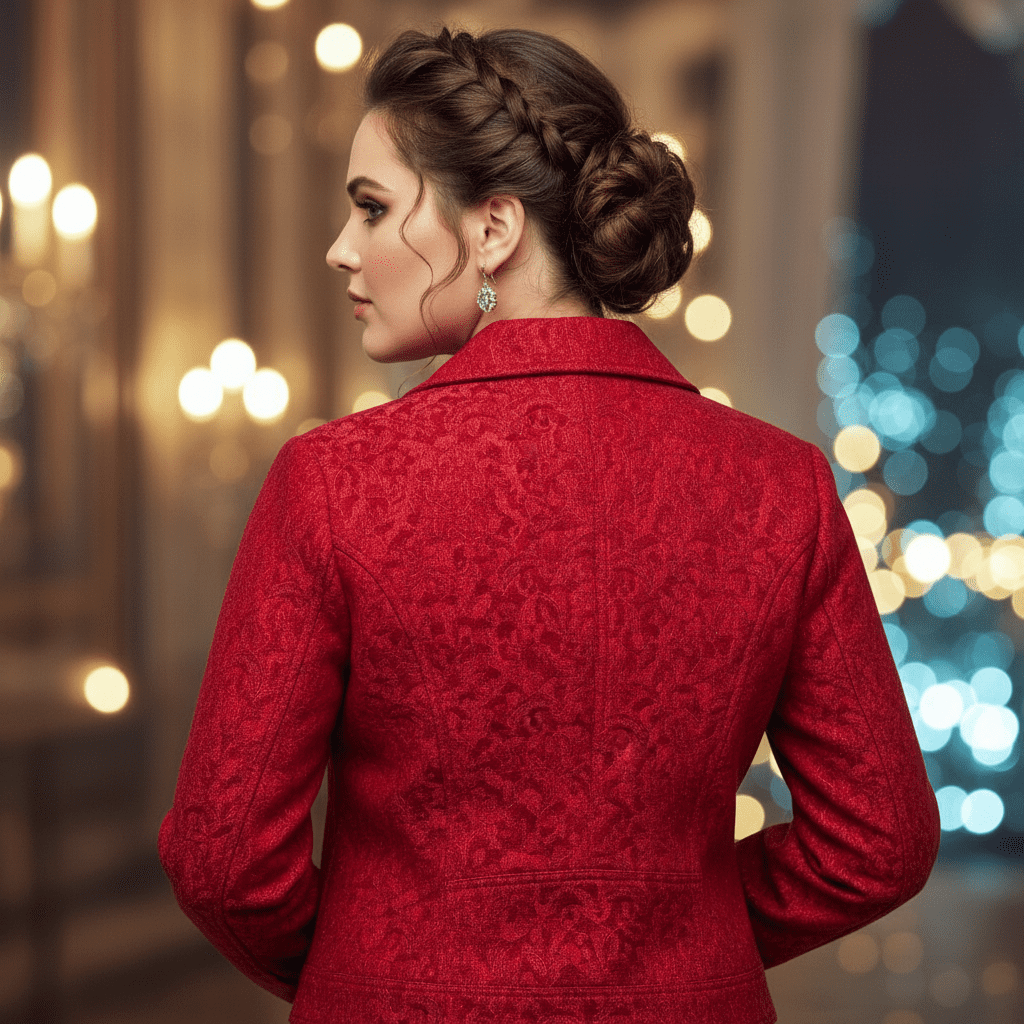 Many women make the mistake of buying clothes based solely on color or cut. However, texture is what makes an outfit look expensive. A flat red cotton jacket might look fine, but a red textured jacket looks premium. The self-pattern interacts with light, creating lowlights and highlights that define your shape.